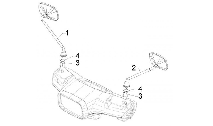 Porta specchietto -PIAGGIO- Vespa S 50-150, Piaggio NRG Power Purejet 50, Gilera Runner 50 SP, Runner VX 125, Runner VXR 200 - filettatura destra M8