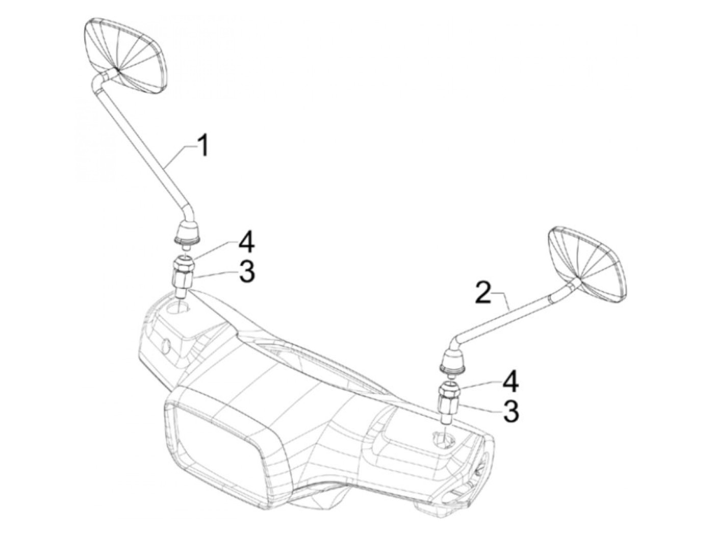 Porta specchietto -PIAGGIO- Vespa S 50-150, Piaggio NRG Power Purejet 50, Gilera Runner 50 SP, Runner VX 125, Runner VXR 200 - filettatura destra M8