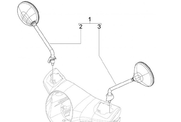 Specchietti, coppia -PIAGGIO- Vespa GT L 125 (ZAPM31101), Vespa GTS 125 (ZAPM31300), Vespa GTS 250 (ZAPM45100, ZAPM45101), Vespa GTS 300 (ZAPM45200, ZAPM45202), Vespa GTS Super 125 (ZAPM45300), Vespa GTS Super 300 (ZAPM45200, ZAPM45202)