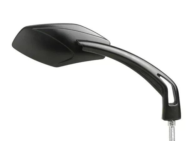 Specchio bgm STYLE GT II con design F1 ottimizzato per il flusso. Finitura superficiale perfetta che non lascia nulla a desiderare. Vetro dello specchio colorato di blu.