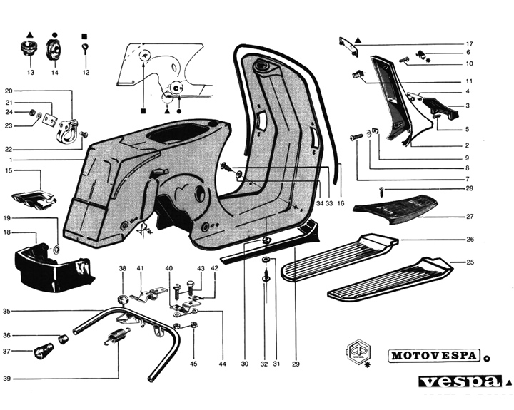 Scritta a cascata -VESPA- Motovespa- Motovespa PX125 Iris (99C), Motovespa PX150 Iris (75C), Motovespa PX200 Iris (76C), Motovespa T5 125cc Sport (98C, 108C), Motovespa TX200 (118C, 119C)