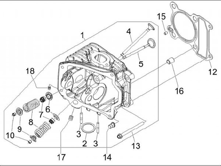 Testa cilindro incl. valvole e molle -PIAGGIO 125/150cc, LEADER, 2V- Vespa ET4, LX, LXV, S, Piaggio Fly, Liberty, Skipper, TPH, X8 Street, ZIP2, Aprilia Mojito, SR Motard, Benelli Adiva, Derbi Boulevard, Sonar, Italjet Torpedo