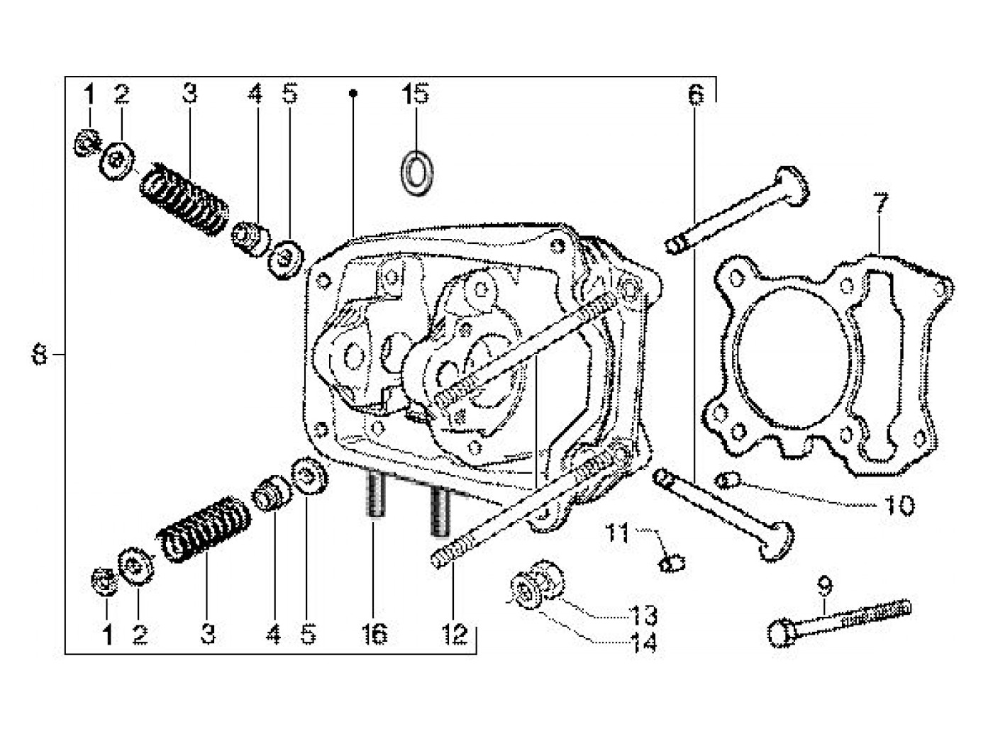 Testa cilindro incl. valvole e molle -PIAGGIO 125/150cc, LEADER, 2V- Vespa ET4, LX, LXV, S, Piaggio Fly, Liberty, Skipper, TPH, X8 Street, ZIP2, Aprilia Mojito, SR Motard, Benelli Adiva, Derbi Boulevard, Sonar, Italjet Torpedo