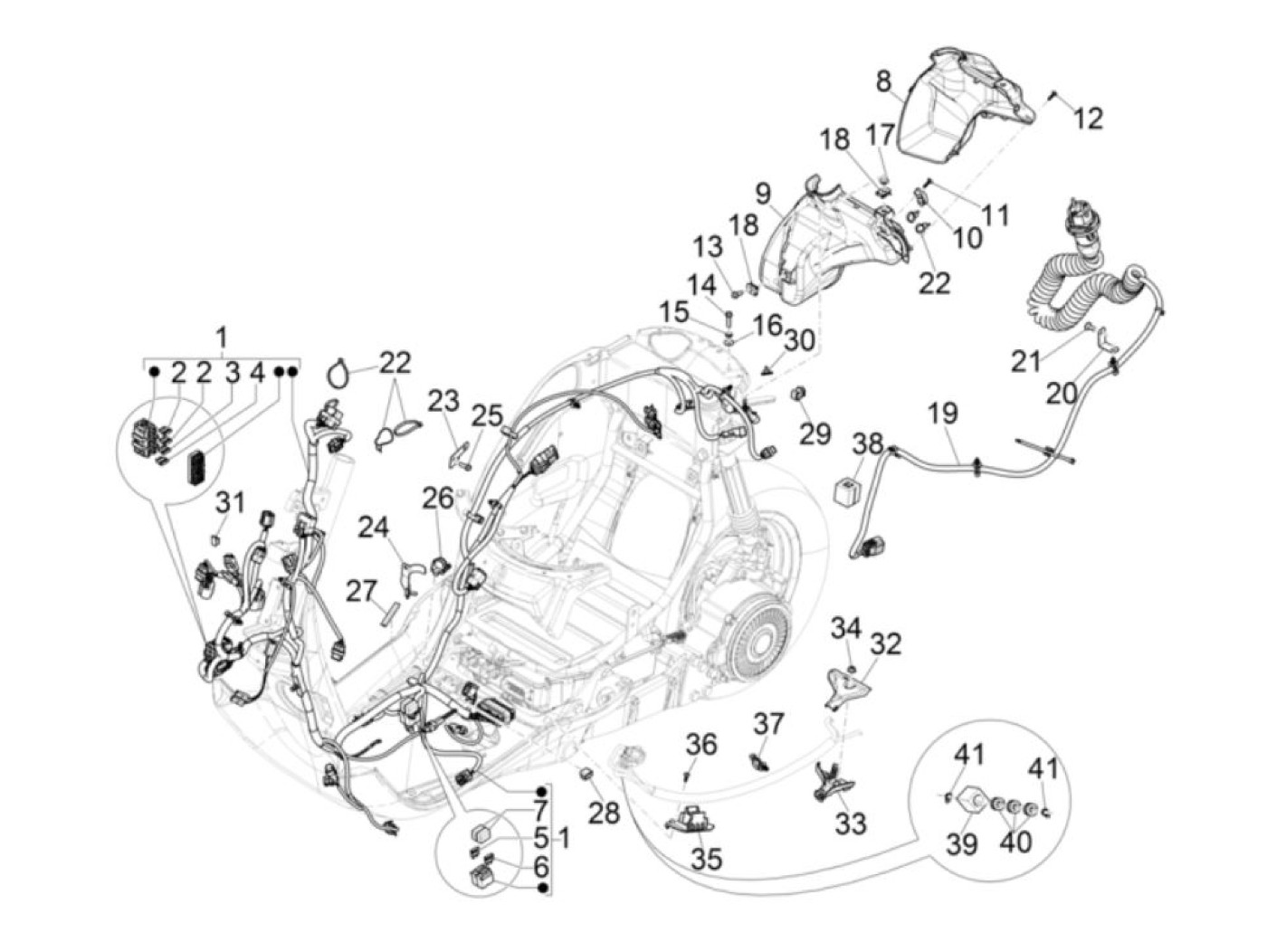 Pelat penahan untuk rangkaian kabel -PIAGGIO- Vespa Primavera 50 (ZAPC53200, ZAPC53300, ZAPC53302, ZAPCA0100, ZAPCA0102, ZAPCA0200, ZAPCA0202), Vespa Sprint 50 (ZAPC53201, ZAPC53301, ZAPC53303, ZAPCA0101, ZAPCA0103, ZAPCA0201, ZAPCA0203, ZAPCA06B, ZAPCAV6