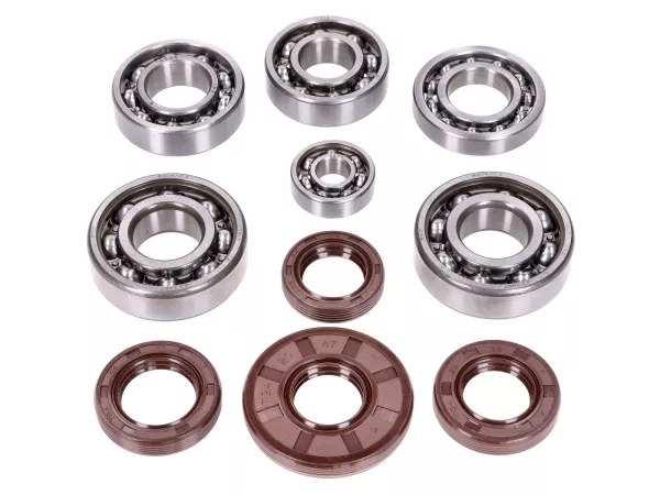 Kugellager-Set von SCHMITT für Simson M541 / M741 Motoren, geeignet für Mopeds und Roller der Typen S51, S53, S70, S83, KR51/2, SR50, SR80. Das Set beinhaltet SKF-Lager in C3-Qualität mit Metallkäfig und alle erforderlichen FKM-Wellendichtringe mit ASW Profil und Stützlippe zur Motor-Instandsetzung. Lieferumfang: - 2x SKF Lager 6204 C3 - 1x Lager 6004 CN - 1x Lager 16004 CN - 1x Lager 6203 CN - 1x Lager 6000 CN - 1x Wellendichtring FKM Premium 20x47x7mm ASW - 1x Wellendichtring FKM Premium 20x35x7mm ASW - 1x Wellendichtring FKM Premium 22x35x7mm ASW - 1x Wellendichtring FKM Premium 20x30x7mm ASW Eigenschaften: - Dichtung: offen - Lagerluft Kurbelwelle: C3, Getriebe: CN - Material: Wälzlagerstahl, Käfig: Stahlblech Hinweis zu FKM: FKM steht für Fluorelastomere gemäß der amerikanischen Norm ASTM, auch bekannt unter dem Handelsnamen Viton® von DuPont Performance Elastomers.