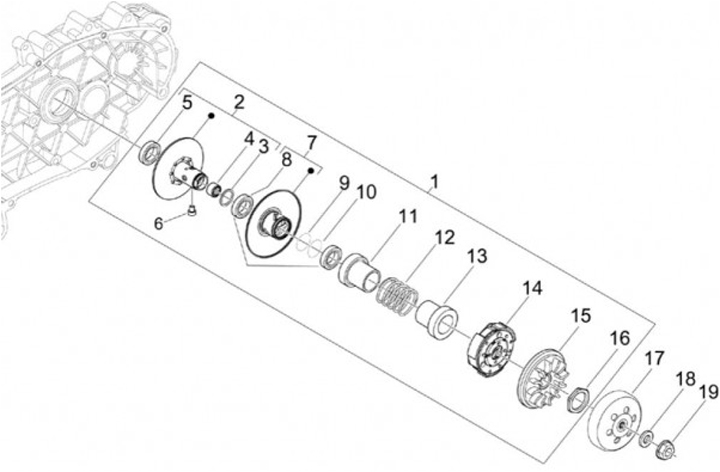 Omvormer met koppeling -PIAGGIO- Vespa GTS 125, Piaggio Beverly 125, MP3 125, X10 125, XEvo 125, Gilera VX 125, Aprilia Sport City Street 125