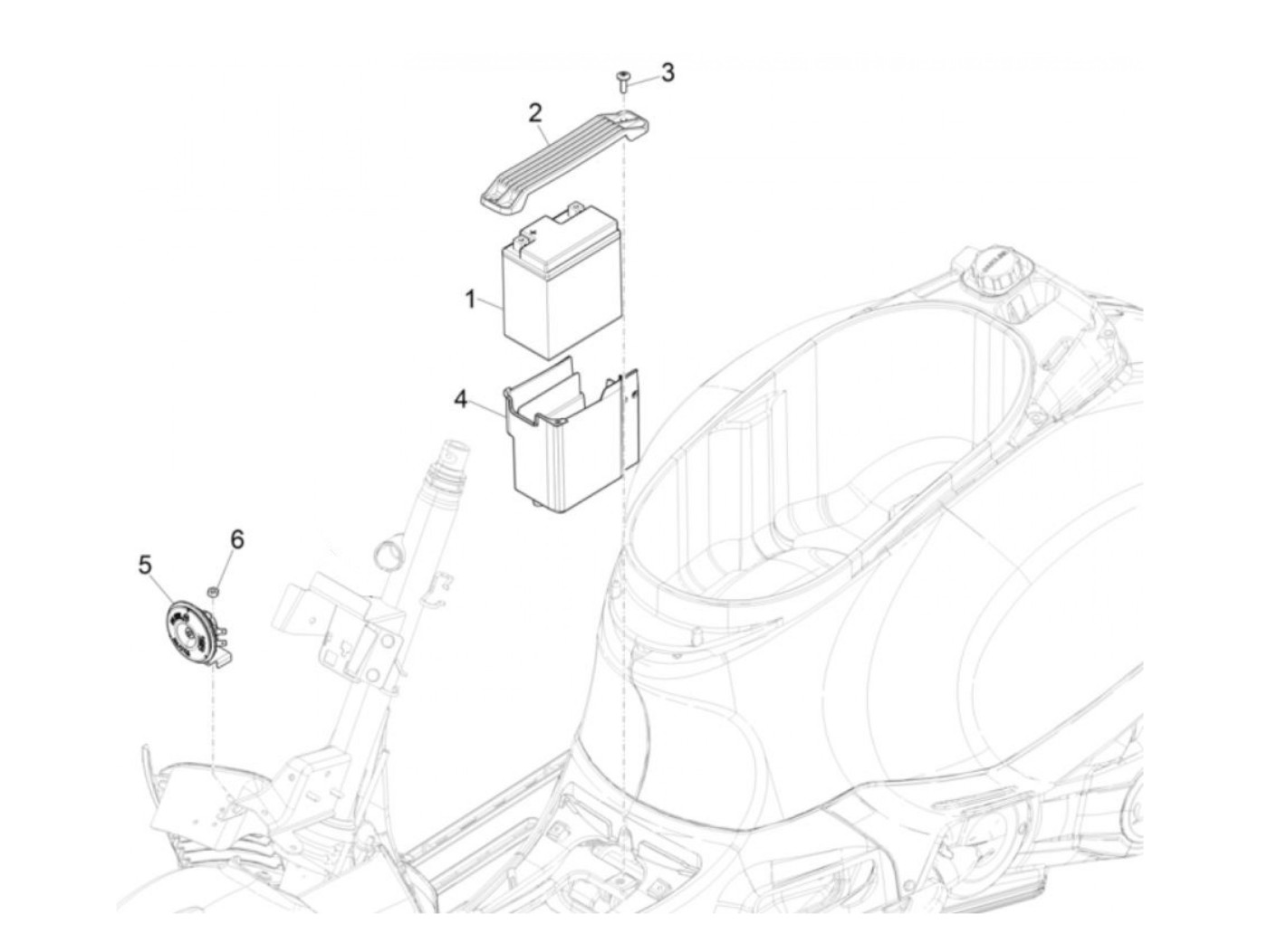 Batterijhouder -PIAGGIO- Vespa GTS 125 (ZAPMA3100, ZAPMA3200, ZAPMA3700, ZAPMD3200), Vespa GTS 150 (ZAPMA3200, ZAPMA3100), Vespa GTS Super 125 (ZAPMA3100, ZAPMA3200, ZAPMA3700, ZAPMD3200)