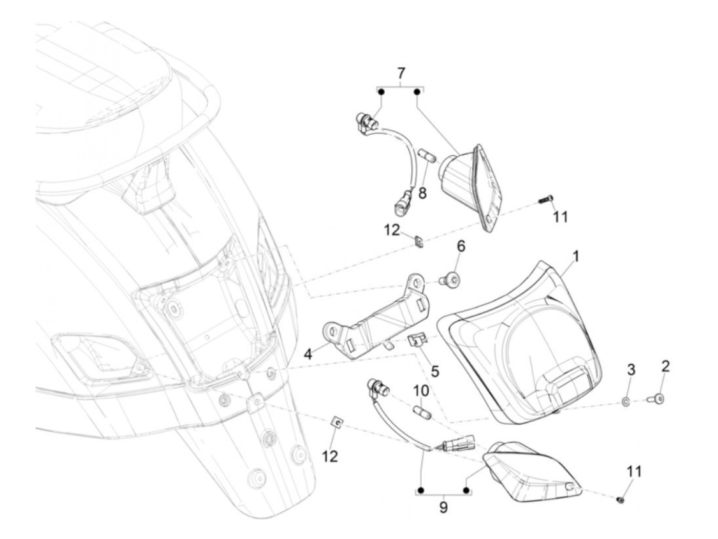 Richtingaanwijzer, wit, achter, links -PIAGGIO- Vespa GTS 125 (ZAPMA3700), Vespa GTS HPE 300 (ZAPMA3600, ZAPMD310), Vespa GTS Super 125 (ZAPMA3700), Vespa GTS Super HPE 300 (ZAPMA360, ZAPMD3100), Vespa GTV HPE 300 (ZAPMA3602, ZAPMA362, ZAPMD3102)