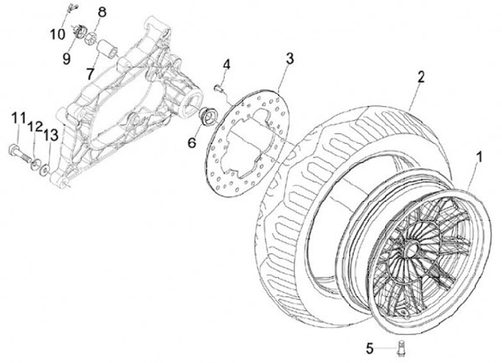 Achterwielmoer -PIAGGIO- Vespa PX (vanaf 1984), T5 125cc, PK XL, Cosa, Piaggio automaat, Gilera automaat