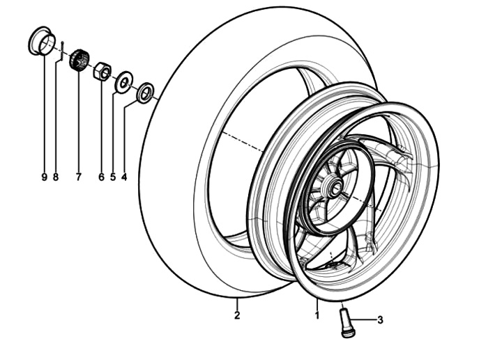 Borgkooi achterwielmoer -PIAGGIO- Vespa PX (vanaf 1984), PK XL, Cosa, Piaggio automaat, Gilera automaat