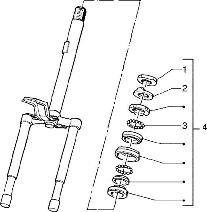 Balhoofdset - balhoofdlager -RMS, 8-delig boven + onder- Piaggio SI, Bravo, Supervravo, Boss