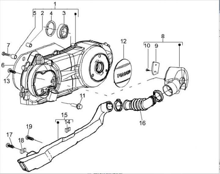 Vario-hoes -PIAGGIO- Vespa GTL 125-200, GTS 125, GTV 125, LX 125-150, LXV 125, S 125-150, Piaggio Fly 125-150, Liberty 125-200, TPH 125, Gilera DNA 125-180, Runner VX 125, Runner VXR 200, Derbi GP1 125, Boulevard 125-200