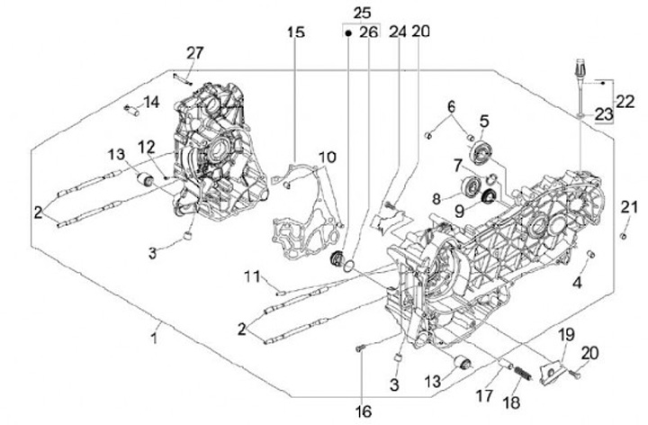 Olieschot, boven -PIAGGIO- Vespa GT 250 (ZAPM45102), Vespa GT L 125 (ZAPM31100, ZAPM31101), Vespa GT L 200 (ZAPM31200), Vespa GTS 125 (ZAPM31300), Vespa GTS 250 (ZAPM45100, ZAPM45101), Vespa GTS 300 (ZAPM45200, ZAPM45202, ZAPMA3300), Vespa GTS HPE 300 (ZA