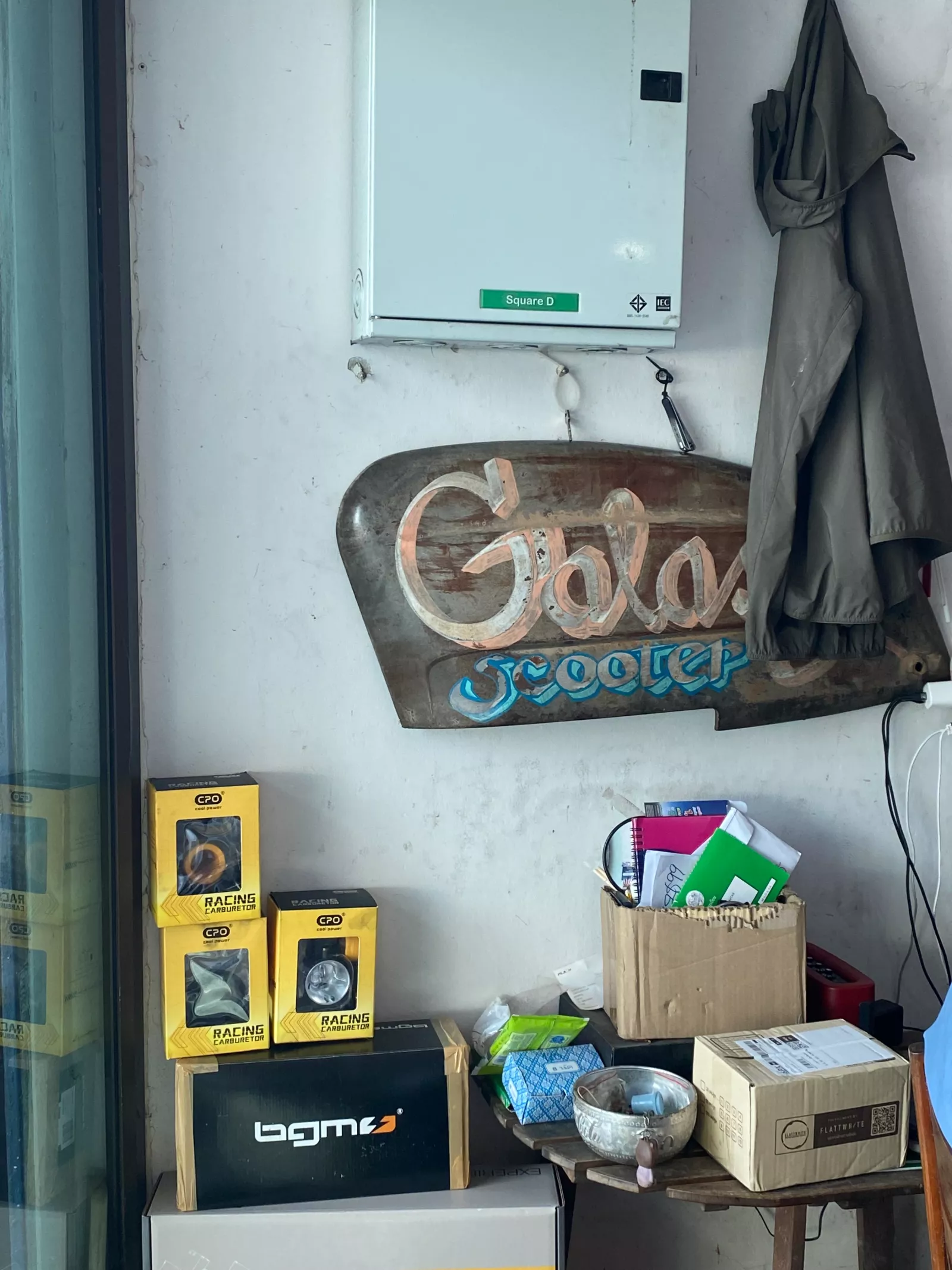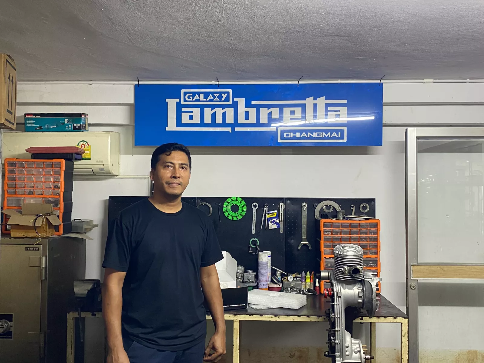 Een andere plek voor scooterfans is Galaxy scooterwinkel. Deze winkel ademt Lambretta en Vespa. Twee verdiepingen vol scooteronderdelen, speciale klassiekers en racescooters en een werkplaats op de begane grond. Ze installeren ook tal van BGM-producten, vandaar dat op de werkbank natuurlijk een motor met RT-cilinder en bgm-koppeling op de werkbank. De positieve feedback op onze BGM-producten was geweldig - net als de suggesties voor verbetering en de eerlijke kritiek. We nemen alles dankbaar in ontvangst!