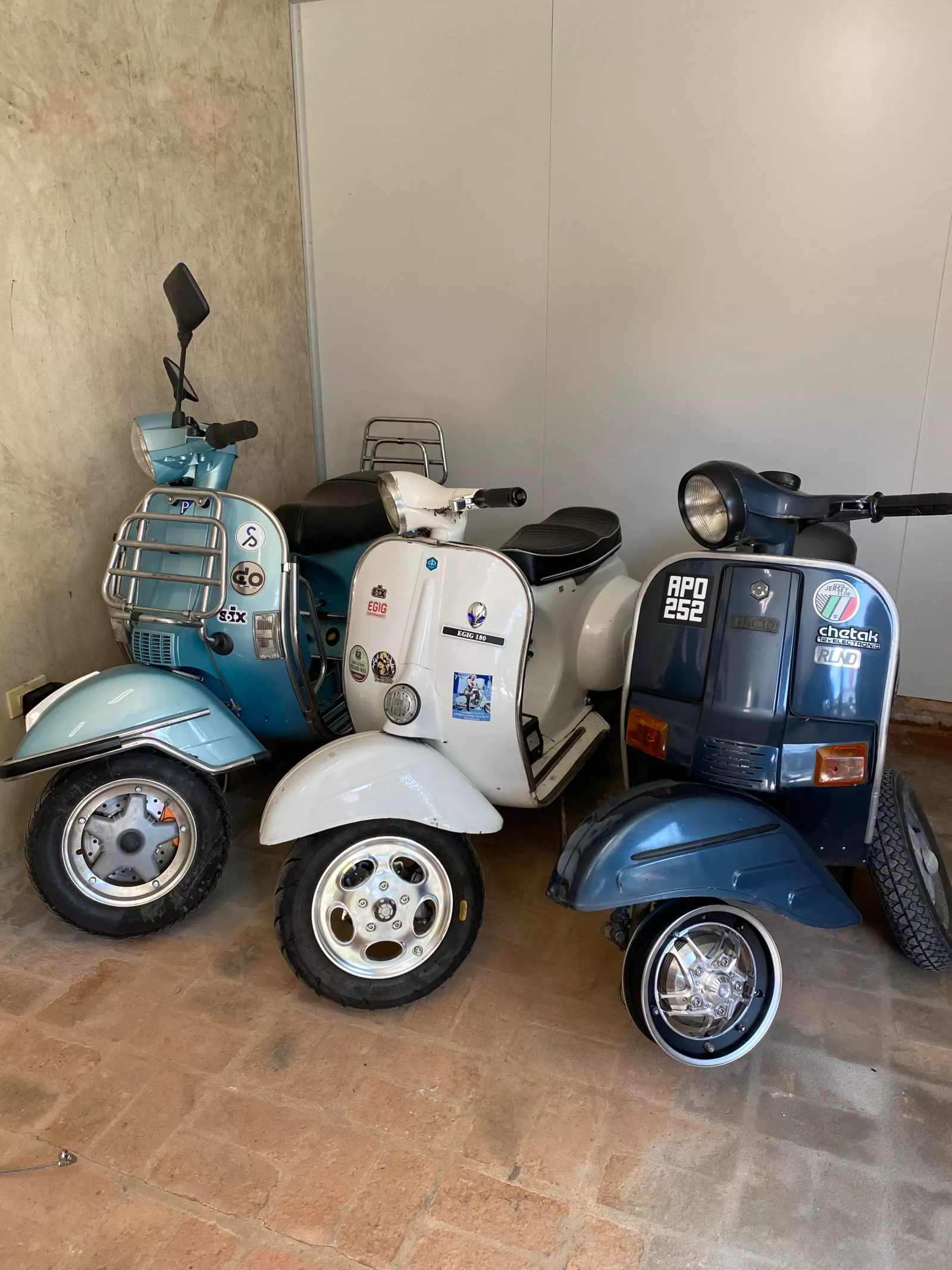 Net buiten de stad konden we de jongens van S6X en Kaccess bezoeken. Ze hebben echt naam gemaakt met hoogwaardige, op maat gemaakte CNC-producten voor Vespa en Lambretta. Vooral hun remsystemen, die verkrijgbaar zijn in verschillende versies, vielen ons op. Schijfremmen met een trommelrem-look - gewoonweg briljant!