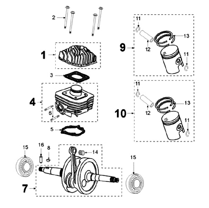 Zylinder (Aluminium, Kolben Pulsair), Kurbelwelle
