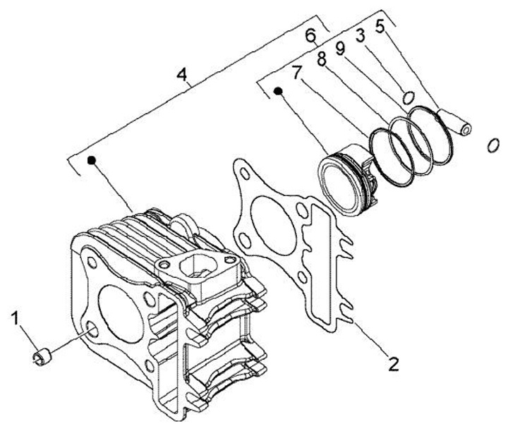 Cilinder -PIAGGIO 50 ccm- Piaggio AC 4-takt (2-kleppen)
