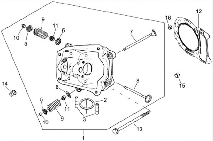 Cilinderkop incl. kleppen en veren -PIAGGIO 125/150cc, LEADER, 2V- Vespa ET4, LX, LXV, S, Piaggio Fly, Liberty, Skipper, TPH, X8 Street, ZIP2, Aprilia Mojito, SR Motard, Benelli Adiva, Derbi Boulevard, Sonar, Italjet Torpedo
