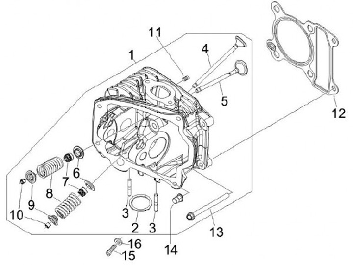 Cilinderkop -PIAGGIO- Vespa LX 50 (ZAPC38300, ZAPC38900), Vespa LXV 50 (ZAPC38902), Vespa Primavera 50 (ZAPC53300, ZAPC53302), Vespa S 50 (ZAPC38901), Vespa Sprint 50 (ZAPC53301, ZAPC53303), Vespa ET4 50 50 (ZAPC2610000001001), Aprilia Scarabeo 50 (ZD4TG