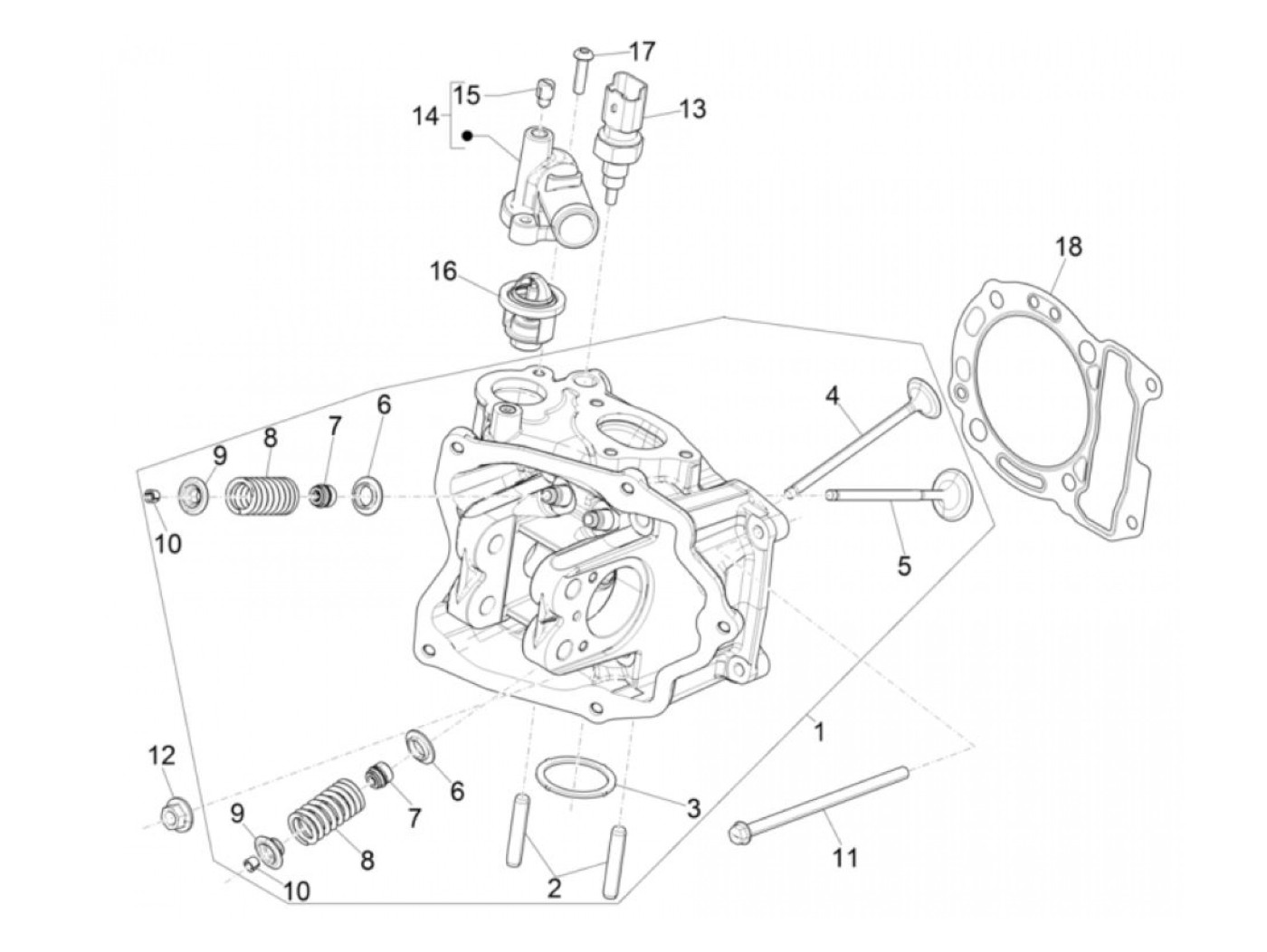 Cilinderkop -PIAGGIO- Vespa GTS HPE 300 (ZAPMA3600, ZAPMD310), Vespa GTS Super HPE 300 (ZAPMA360, ZAPMD3100), Vespa GTV HPE 300 (ZAPMA3602, ZAPMA362, ZAPMD3102), Piaggio MP3 HPE 300 (ZAPTD2100)