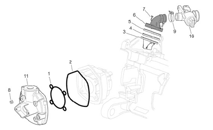 Gasklephuis -PIAGGIO- DiTech/Purejet - Gilera Runner Purejet, NRG Purejet, Aprilia SR DiTech (Morini & Piaggio-motor)