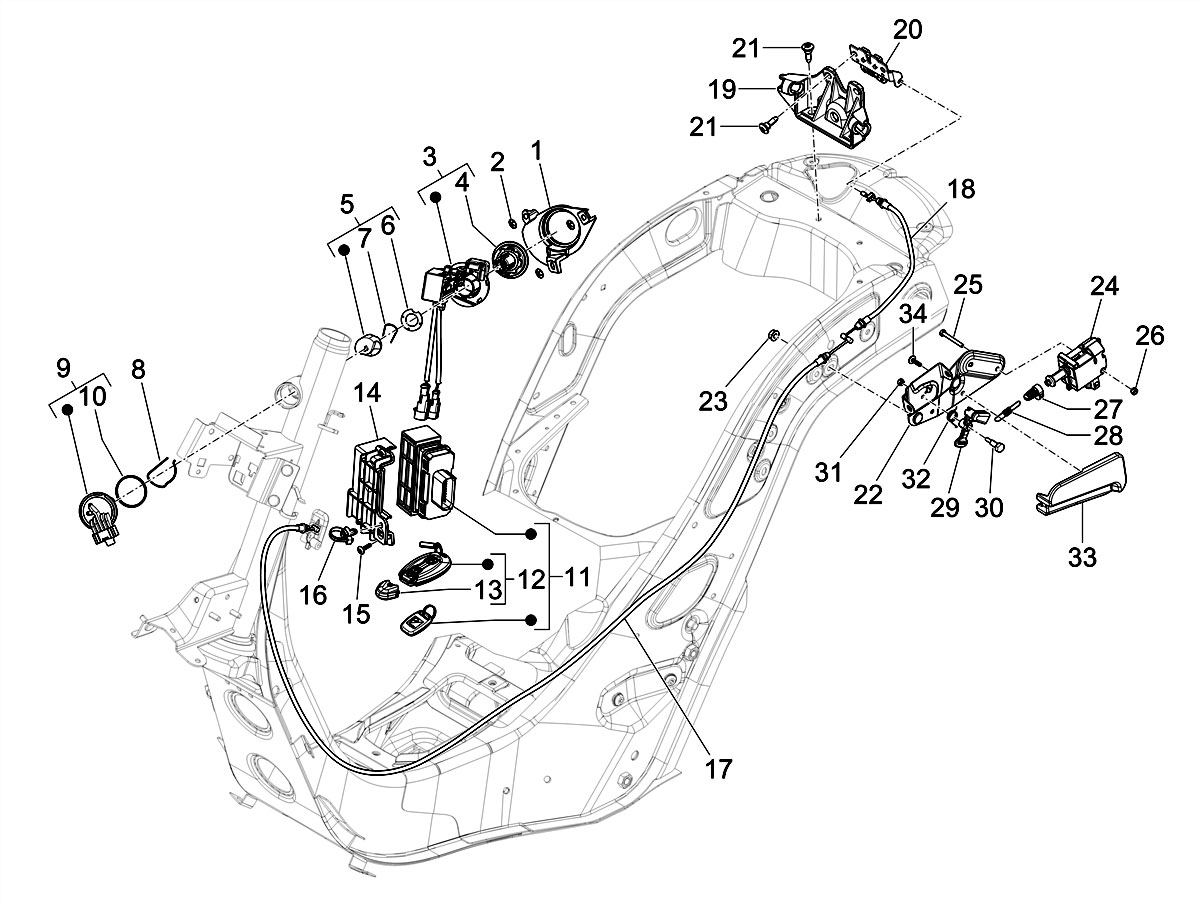 Contactslot zonder sleutel-PIAGGIO- Vespa GTS 125 (ZAPMD3202, ZAPMD3203), Vespa GTS 300 HPE (ZAPMD3103, ZAPMD3104)
