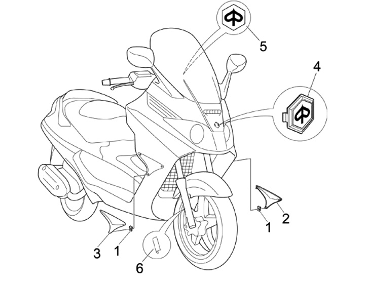 Belettering -PIAGGIO- Piaggio zeshoek (42x48mm)- Piaggio Beverly, Beverly Cruiser, Beverly MIC, Beverly RST, Beverly Sport Touring, Beverly Tourer, Carnaby, Fly, Liberty, Liberty Sport, Liberty Teens, MP3, MP3 Yourban, X7, X8, X10, X Evo