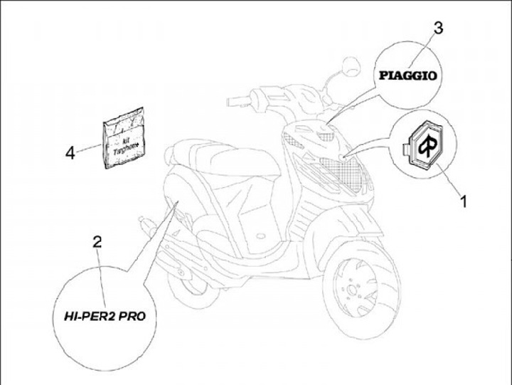 Sticker embleem Piaggio -PIAGGIO- Vespa Ciao, Piaggio TPH 50-125, X8 125-250, X9 125-500, Zip II 50-125, Zip 50 SP2, Fly 50-150, Liberty 50-125, MP3 300