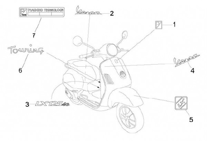 Bagageruimtebelettering -PIAGGIO- Touring - Vespa GTS 300 (ZAPM45200, ZAPM45202), Vespa GTS Super 125 (ZAPMA3100, ZAPMA3200), Vespa GTS Super 300 (ZAPM45200, ZAPMA3300), Vespa LX 125 (ZAPM68300, ZAPM68100, ZAPM68303), Vespa LX 150 (ZAPM68400), Vespa LX 50