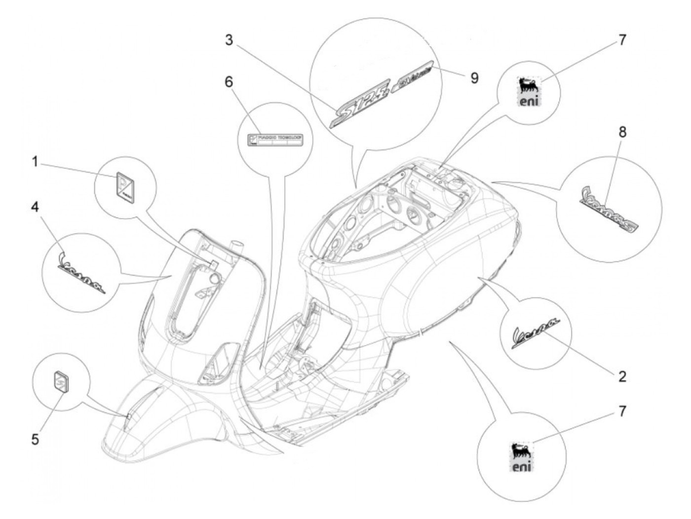 Spatbordnippel belettering -PIAGGIO- Vespa S 50-125
