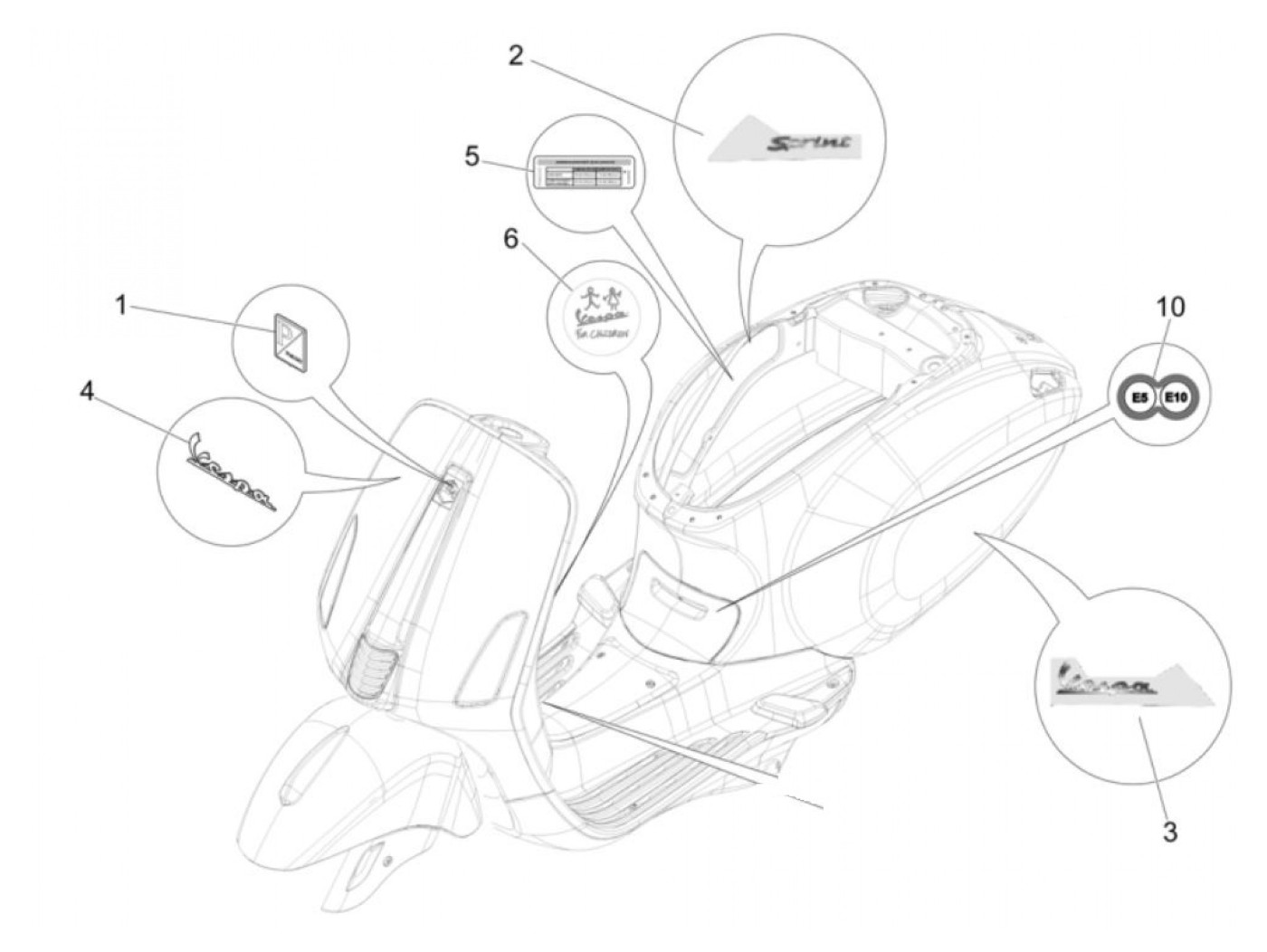 Zijafdekking belettering -PIAGGIO- Vespa - Vespa Primavera 125 (ZAPM81100, ZAPM81101, ZAPMA1100, RP8M82500, RP8M82821, RP8M82100, RP8M82310, ZAPMA1101, ZAPMD1100), Vespa Primavera 150 (ZAPM81200, ZAPMA1200, ZAPM81201, ZAPMA1201, ZAPMD120), Vespa Primavera