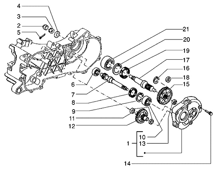 Aandrijving ingaande as / primaire as Z=11 -PIAGGIO- Vespa ET2, Piaggio TPH, Quartz, Sfera RST, Free, Zip SP. NRG, NRG MC2, NTT, Zip RST, Zip FR, Gilera Storm, Easy Moving