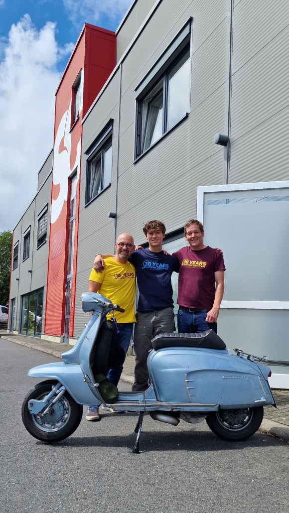 Het is het eerste weekend van februari 2023 en eindelijk is het zover. Scooterist Meltdown weer plaats. Zoals gebruikelijk zullen er veel dealers aanwezig zijn om nieuws, productontwikkelingen en de klassiekers in het assortiment te presenteren. Onder andere onze vrienden van het Rimini Lambretta Centrum / Casa Performance en vriend en buurman Andreas van Nagy Blechroller. We stelden onze stand op tegenover het Rimini Lambretta Centre en naast de hot tuning goodies zoals de Sledge Hammer en de nieuwe Twin motor de scooters die we hebben meegenomen en die te koop zijn. Naast een smetteloze Lambretta J 125 4-speed is het vooral een prachtige Lambretta 125 Special die altijd onze enthousiaste ogen trekt. Beide scooters hebben Italiaanse papieren en zijn meer dan redelijk geprijsd. Terwijl de Stelina helaas teruggaat naar Italië, bewijst de familie Nagy hun kennerschap en blijft de 125 Special in het Rijnland. Julius Nagy, de jongste van Andrea's twee zonen, had goud in handen en kocht zijn eerste Lambretta op 16-jarige leeftijd. Op zondag, na een perfecte Meltdown nummer 9 maakt het Rimini Lambretta Centre een omweg naar Grevenbroich om Nagy Blechroller af te leveren. Julius krijgt een briefing van Marco over de 125 Special en mag er zijn eerste rondje mee rijden. Post Rimini Lambretta Centrum