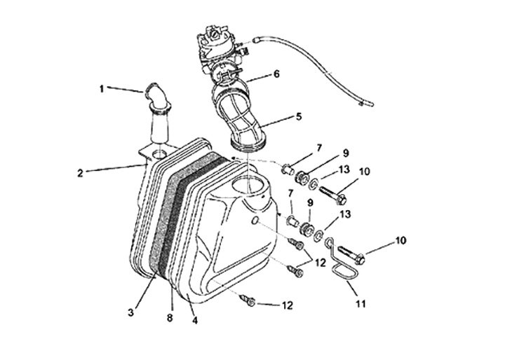 Inlaatslang -APRILIA- Minarelli horizontaal - Yamaha Aerox (YQ50/L, 2-takt), MBK Nitro (YQ50/L, 2-takt), Aprilia SR50 (gebruikt als verbindingsslang/inlaatbalg naar de luchtfilterkast)