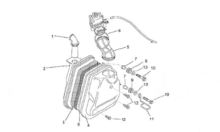 Inlaatslang -APRILIA- Minarelli horizontaal - Yamaha Aerox (YQ50/L, 2-takt), MBK Nitro (YQ50/L, 2-takt), Aprilia SR50 (gebruikt als verbindingsslang/inlaatbalg naar de luchtfilterkast)