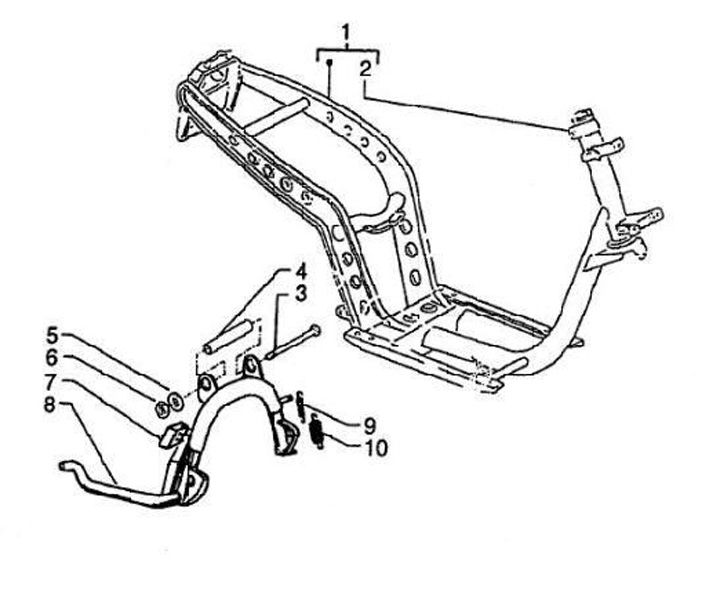 Hoofdstandaard -PIAGGIO- Vespa ET4 50 50 (ZAPC26000, ZAPC26100), Vespa LX 50 (ZAPC38700, ZAPC38300, ZAPC38900), Vespa LXV 50 (ZAPC38902), Vespa S 50 (ZAPC38600, ZAPC38901), Piaggio Zip II 100 (LBMM25200), Piaggio Zip II 50 (ZAPC25000, LBMC25C, LBMC25C00,