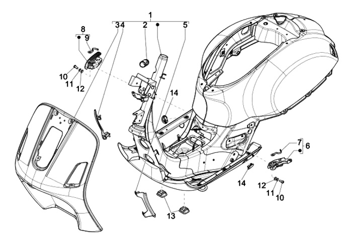Steun voor bagageruimte, radiator links -PIAGGIO- Vespa GT 250 (ZAPM45102), Vespa GTS 125 (ZAPM31300, ZAPMA3100, ZAPMA3200, ZAPMA3700), Vespa GTS 150 (ZAPMA3200, ZAPMA3100), Vespa GTS 250 (ZAPM45100, ZAPM45101), Vespa GTS 300 (ZAPM45200, ZAPM45202, ZAPMA3