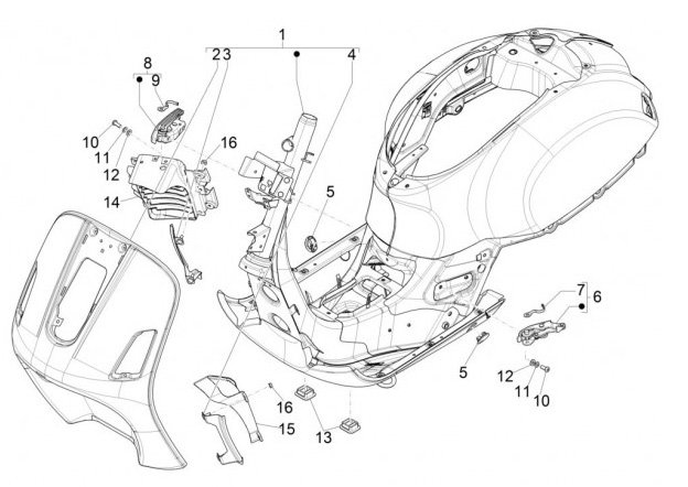 Beenbeschermer -PIAGGIO- Vespa GT 250 (ZAPM45102), Vespa GT L 125 (ZAPM31101), Vespa GTS 125 (ZAPM31300, ZAPMA3100, ZAPMA3200), Vespa GTS 150 (ZAPMA3200, ZAPMA3100), Vespa GTS 250 (ZAPM45100, ZAPM45101), Vespa GTS 300 (ZAPM45200, ZAPM45202, ZAPMA3300), Ve