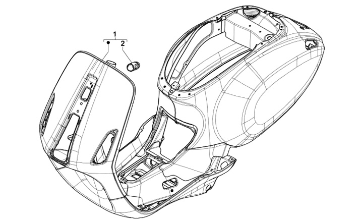 Frame - Chassis, ongelakt -PIAGGIO- Vespa Primavera 125 (RP8M82100, RP8M82310, RP8M82821, ZAPM81100, ZAPM81101, ZAPMA1100), Vespa Primavera 150 (ZAPM81200, ZAPM81201, ZAPMA1200), Vespa Primavera 50 (ZAPC53100, ZAPC53200, ZAPC53300, ZAPC53302, ZAPCA0100)