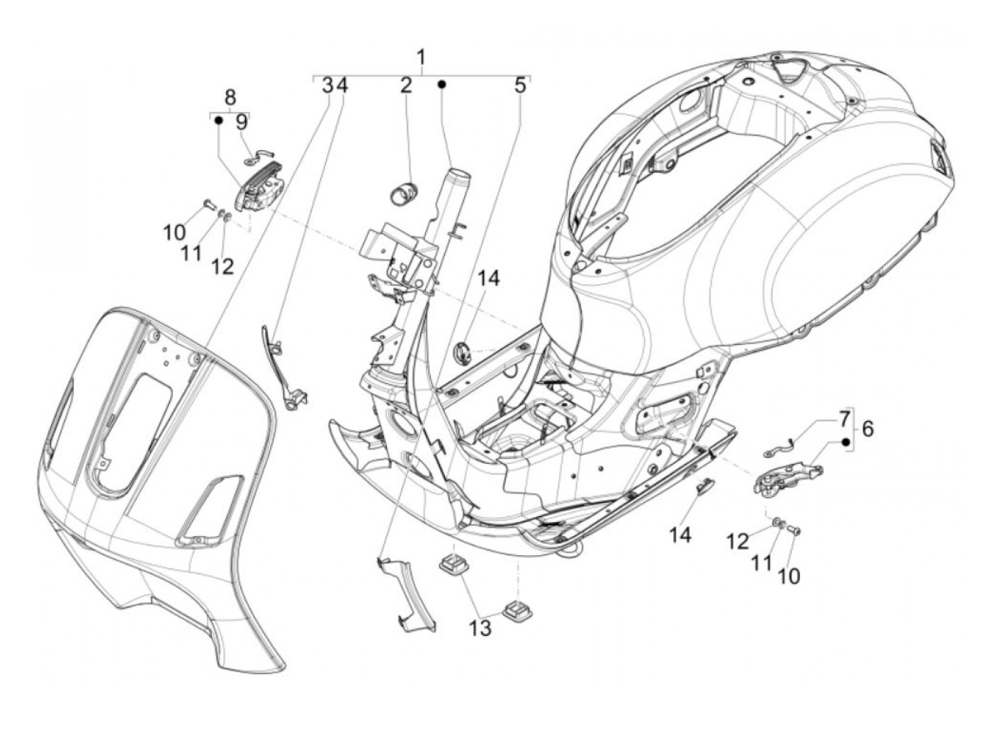 Veer voor voetsteun rechts / links -PIAGGIO- Vespa GT 250 (ZAPM45102), Vespa GT L 125 (ZAPM31100, ZAPM31101), Vespa GT L 200 (ZAPM31200), Vespa GTS 125 (ZAPM31300, ZAPMA3100, ZAPMA3200, ZAPMA3700), Vespa GTS 150 (ZAPMA3200, ZAPMA3100), Vespa GT