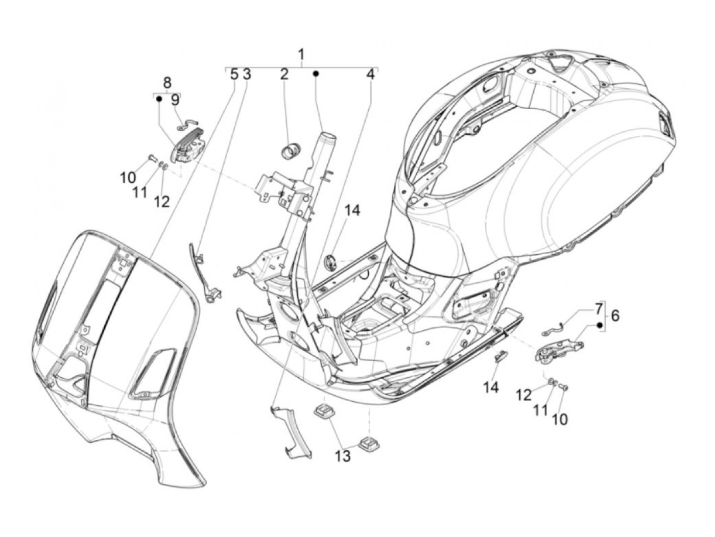 Steun voor bagageruimte, radiator links -PIAGGIO- Vespa GT 250 (ZAPM45102), Vespa GTS 125 (ZAPM31300, ZAPMA3100, ZAPMA3200, ZAPMA3700), Vespa GTS 150 (ZAPMA3200, ZAPMA3100), Vespa GTS 250 (ZAPM45100, ZAPM45101), Vespa GTS 300 (ZAPM45200, ZAPM45202, ZAPMA3