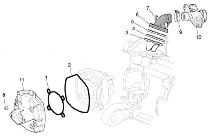Gasklephuis -PIAGGIO- DiTech/Purejet - Gilera Runner Purejet, NRG Purejet, Aprilia SR DiTech (Morini & Piaggio-motor)
