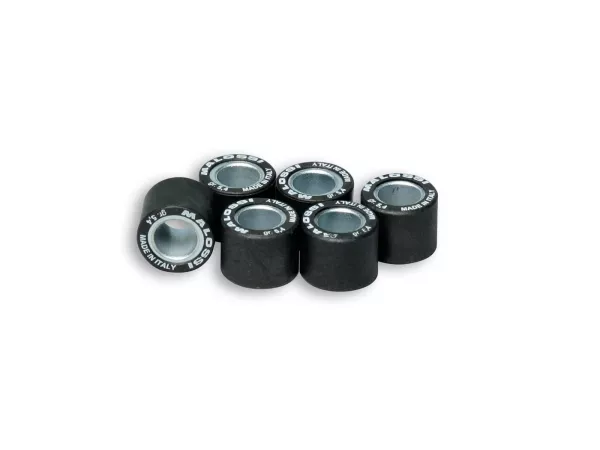 Rollenslijtage wordt gekenmerkt door eenzijdige afplatting, wat betekent dat de rollen niet meer goed in de variatorbaan kunnen glijden. Dit resulteert in een slechte acceleratie en vaak een lagere topsnelheid omdat de variator niet meer volledig kan uitschuiven door de kleinere diameter van de rollen.