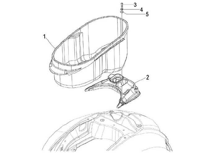 Afdekking achter helm compartiment -PIAGGIO- Vespa GT 250 (ZAPM45102), Vespa GT L 125 (ZAPM31100, ZAPM31101), Vespa GT L 200 (ZAPM31200), Vespa GTS 125 (ZAPM31300), Vespa GTS 250 (ZAPM45100, ZAPM45101), Vespa GTS 300 (ZAPM45200), Vespa GTS Super 125 (ZAPM