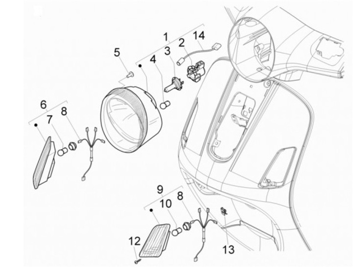 Kabel aftakking parkeerlicht -PIAGGIO- Vespa GTS 250 (ZAPM45100, ZAPM45101), Vespa GTS Super 125 (ZAPM45300, ZAPM45301), Vespa GTS Super 300 (ZAPM45200), Vespa GTV 300 (ZAPM45201, ZAPMA3302), Vespa GTV HPE 300 (ZAPMA3602, ZAPMA362, ZAPMD3102), Vespa LX 12