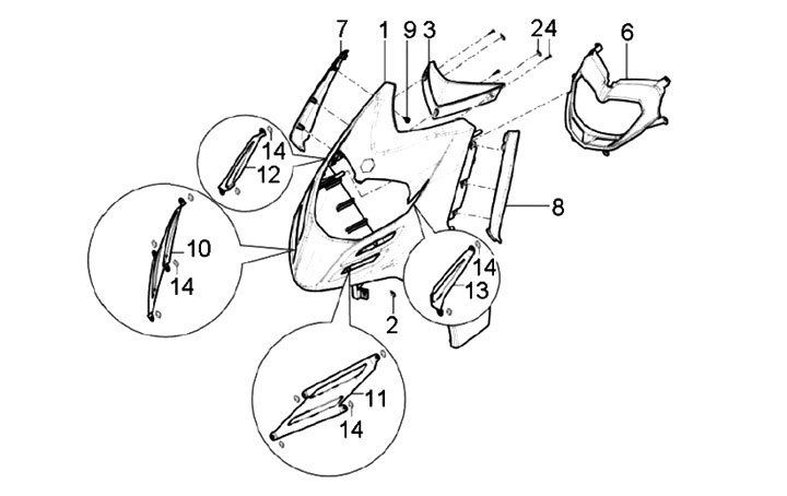 Afdekking ventilatiesleuf rechts -PIAGGIO- Nieuwe TPH (vanaf 2010) (LBMC501, LBMM701, ZAPM501)
