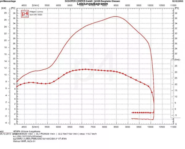 Het vrij hoge vermogen voor het begin van de resonantie bij ongeveer 6000 tpm gaat ten koste van minder piekvermogen. Aan de positieve kant heeft de Malossi MHR-cilinder een relatief korte inbouwlengte, waardoor de zuiger uitsteekt op krukassen met een slag van 60 mm. Afhankelijk van de gewenste motoreigenschappen is daarom een afstandhouder nodig voor de cilinderkop. Dankzij de centreerhulzen van de MHR en de Sport is het gebruik van