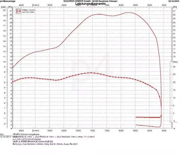 Een afstandsbus van 1 mm aan de cilinderbodem en een afstandsbus van 0,5 mm aan de (MHR) cilinderkop zijn nuttig gebleken voor een slag van 60 mm. Als de cilinder alleen moet worden geshimd aan de basis en de uitlaat moet worden bewerkt om een hoog piekvermogen te bereiken, kan de MHR dankzij het herziene overloopsysteem ook zeer hoge stuurhoeken omzetten in rijdbaar vermogen. Waarden van rond de 136° overstroomhoek zijn niet ongewoon en werken heel goed, afhankelijk van de perefiek.