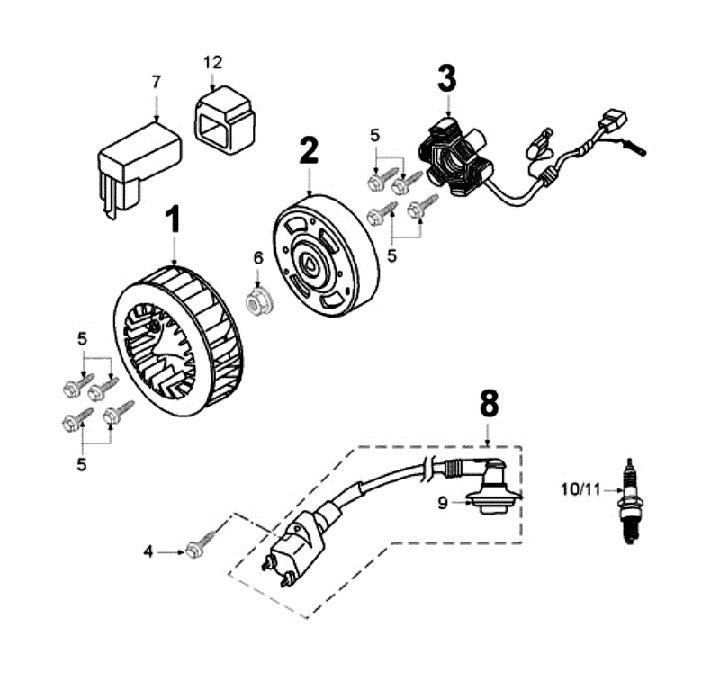 Bobine -OEMKWALITEIT- Peugeot 50-100 ccm, Honda 50 ccm, Kymco 50 ccm - SPEEDFIGHT1, SPEEDFIGHT2, SPEEDFIGHT3, XFIGHT, TKR, TREKKER, VIVACITY, BUXY, ELYSEO, ELYSTAR, SPEEDAKE, SQUAB, ST, SV, ZENITH