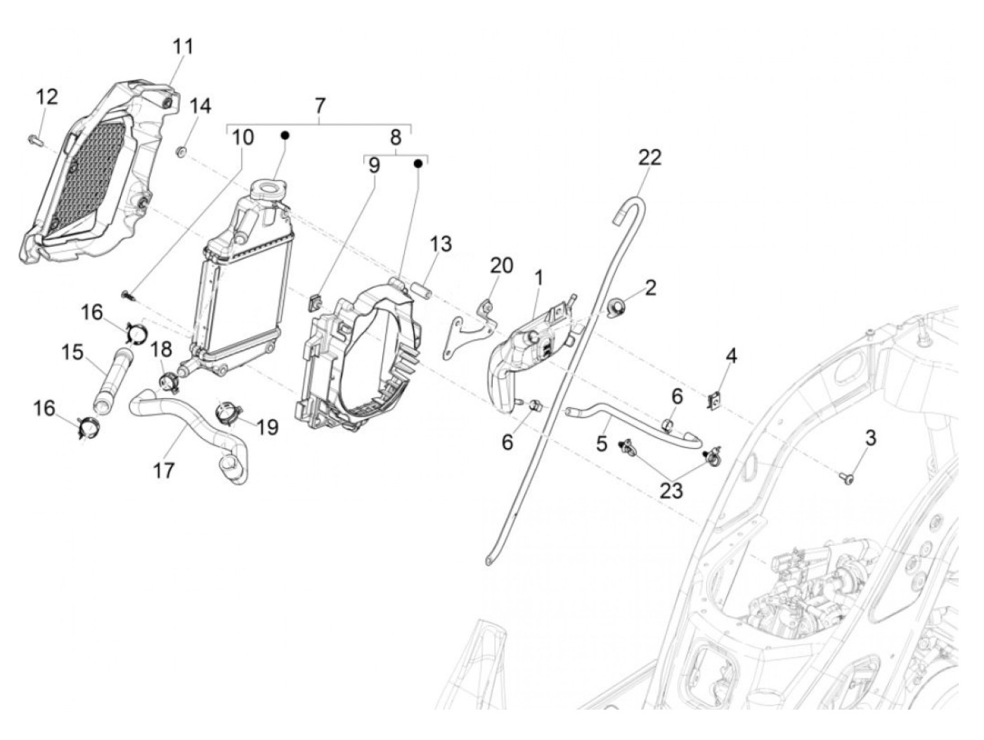 Radiatorslang, rechts, boven -PIAGGIO- Vespa GTS 125 (ZAPMA3100, ZAPMA3200, ZAPMA3700, ZAPMD3200), Vespa GTS 150 (ZAPMA3200, ZAPMA3100), Vespa GTS Super 125 (ZAPMA3100, ZAPMA3200, ZAPMA3700, ZAPMD3200), Piaggio Medley 125 (RP8MA0120, RP8MA0121, RP8MB0100,